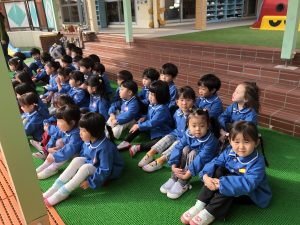 先月から年少さんも年中さんも幼稚園さんも、毎日の生活の中で、少しずつ練習を重ねてきた様子を見ていただく事になりました😀