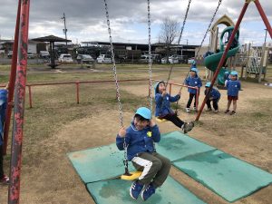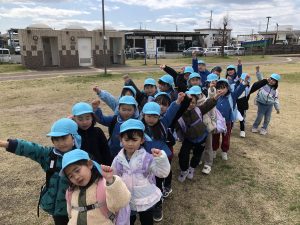 「いっぱい走るからジャンパー持って来なかった✌️」と元気いっぱいのお友だちもいる中、保育園の近くにある池田公園へ出発です‼️