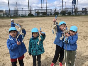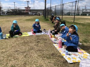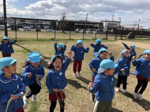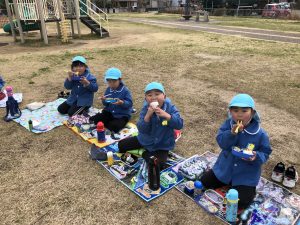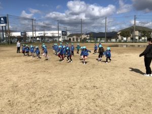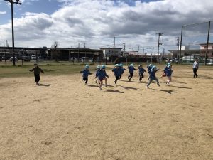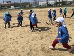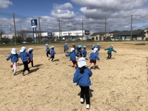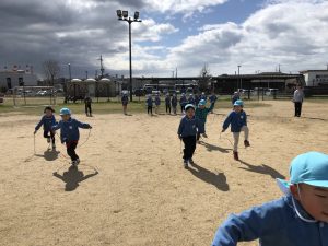 いつもは園庭だけど、今日は広場で出来るとあって、