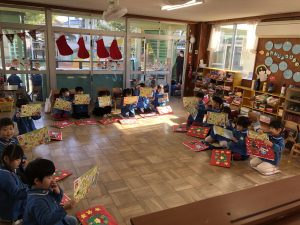 11月の終わり頃から、みんなでサンタさんのことを思いながら、「さんたさん、ほいくえんにもきてくれへんかな?」